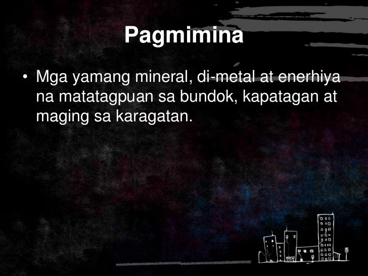 Sub-sektor ng industriya na kung saan ang mga metal di-metal at enerhiyang mineral ay kinukuha at dumadaan sa proseso upang gawing tapos na produkto. Makapagpatatag ng ugnayan ng mga mamamayan at makapagtaas ng uri ng serbisyo publiko. Ekonomiya ng pilipinas sumadsad.