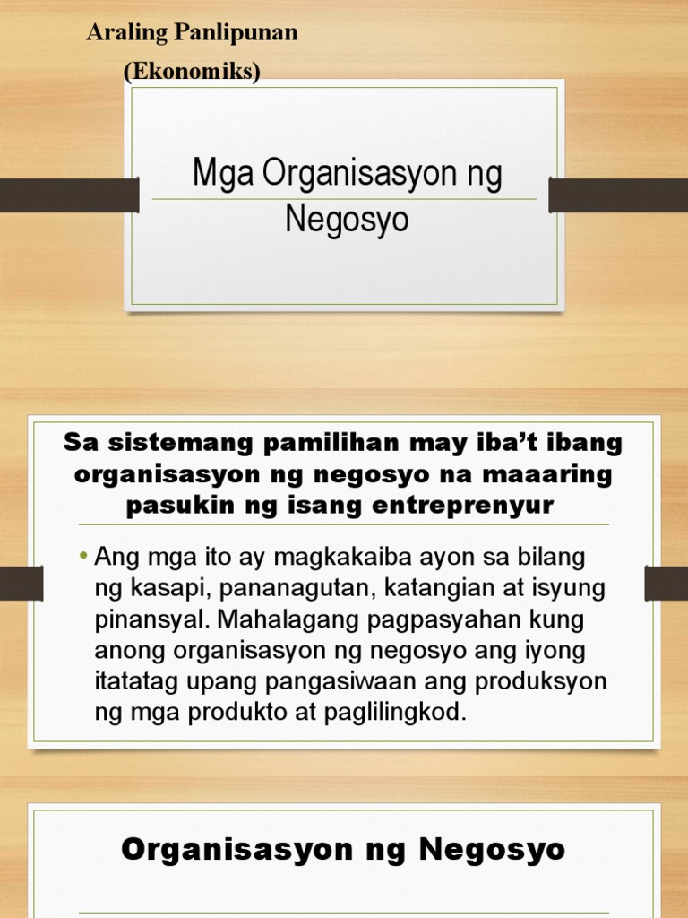 Araling Panlipunan Ekonomiks Mga Organisasyon Ng Negosyo Pdf