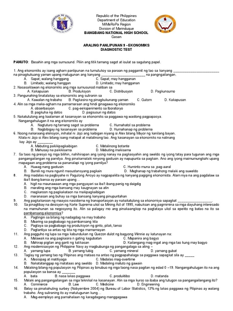 Save Save 4TH PERIODICAL TEST GRADE 9docx For Later 67 67 found this document useful Mark this document as useful 33 33 found this document not. Ang mga mag - aaral ay may Nailalapat ang kahulugan ng ekonomiks sa pang- Una pag unawa sa mga Ang mga mag -. Gumagawa ng plano upang mapabuti ang kanilang kapakanan.