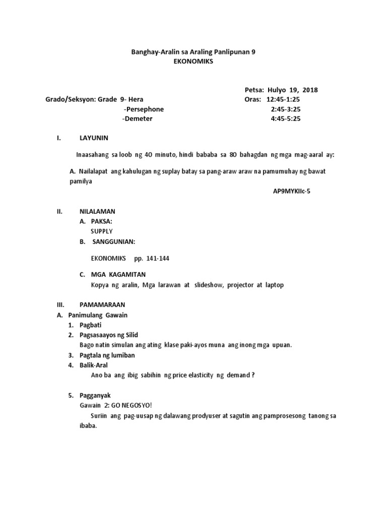 Louis Angelo del Rosario. Banghay Aralin SaAraling Panlipunan 10 Ekonomiks. GRADE 7-10 ARALING PANLIPUNAN AP DLL DLP TG LMs Downloads by The Blogger on Wednesday July 17 2019 in Daily Lesson Log Filipino Learners Materials Teaching Guide.